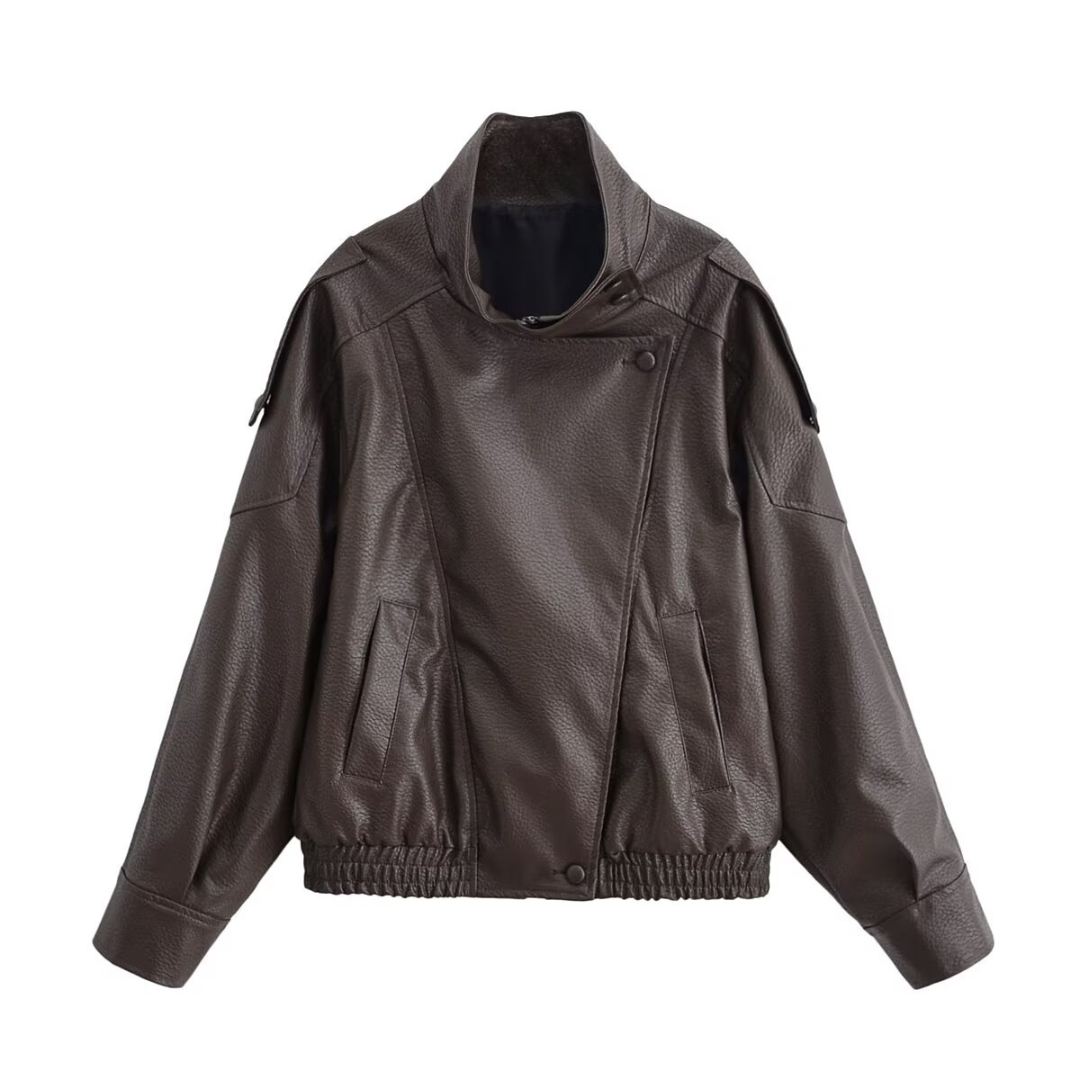 Asymmetrical Zipper Detail – The off-center front zip gives this jacket its signature edgy, biker-inspired look that instantly elevates any outfit.